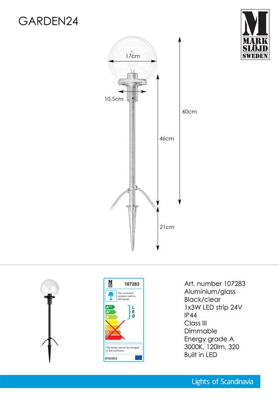 Markslöjd GARDEN 24 Słupek Kula 60cm Czarny/Przezr. - MS-107283