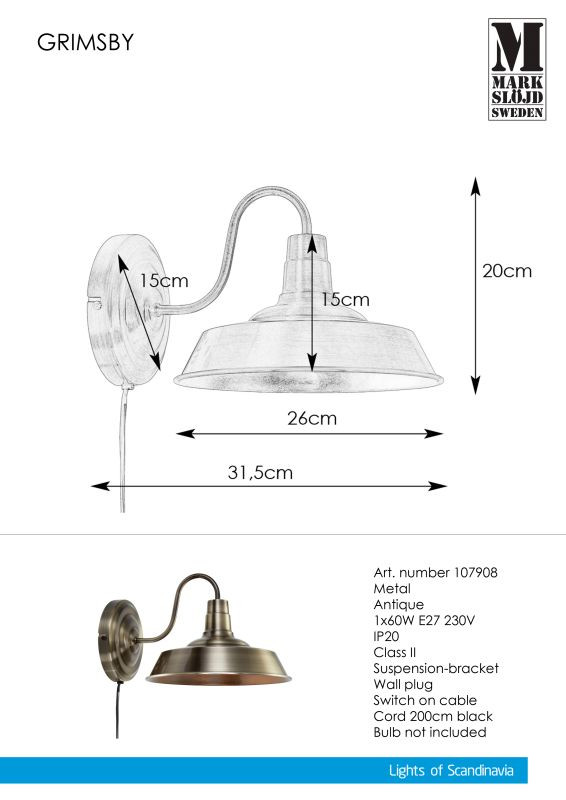 Markslöjd GRIMSBY Kinkiet 1L Antyczny - MS-107908