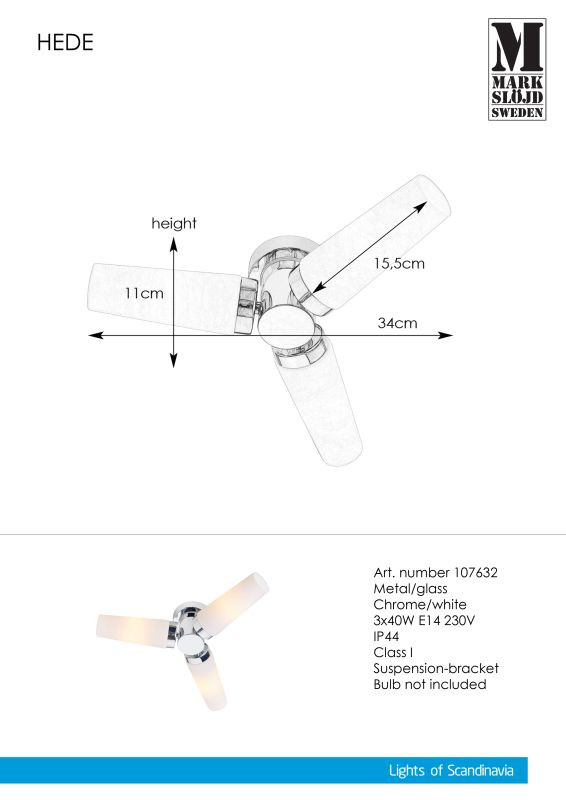 Markslöjd HEDE Ceiling 3L Chrome/White - MS-107632