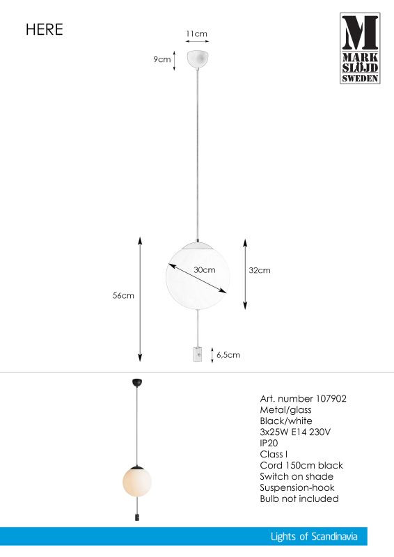 Markslöjd HERE Wisząca 3L Czarna/Biała - MS-107902