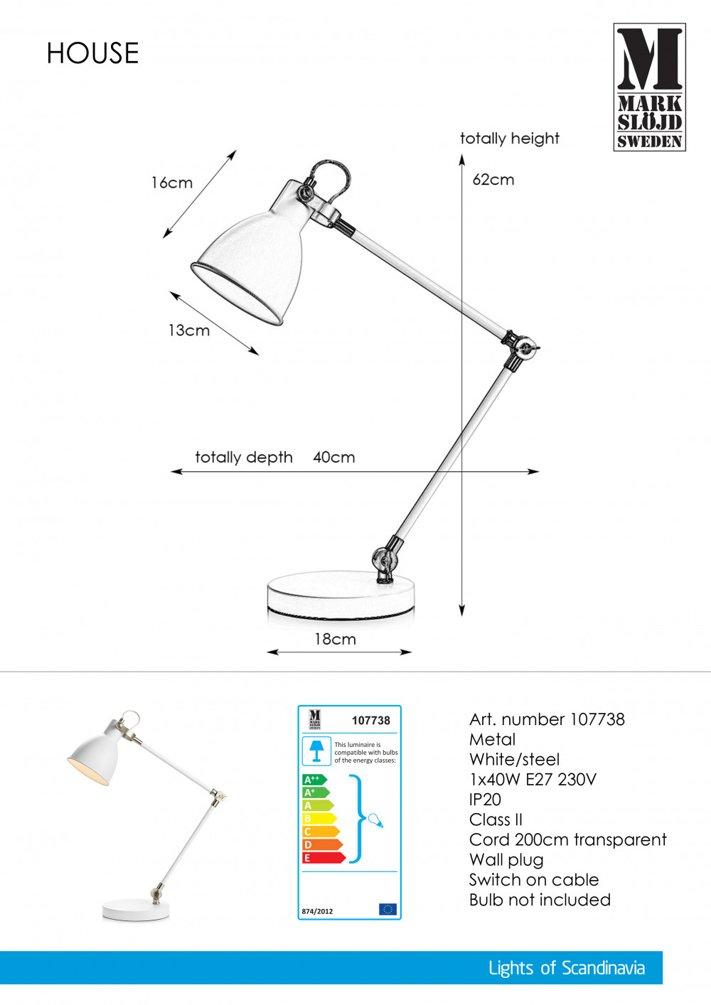 Markslöjd HOUSE Table 1L White/Steel - MS-107738