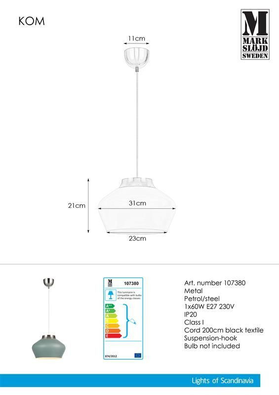 Markslöjd KOM Wisząca 31cm 1L Szary/Stal - MS-107380