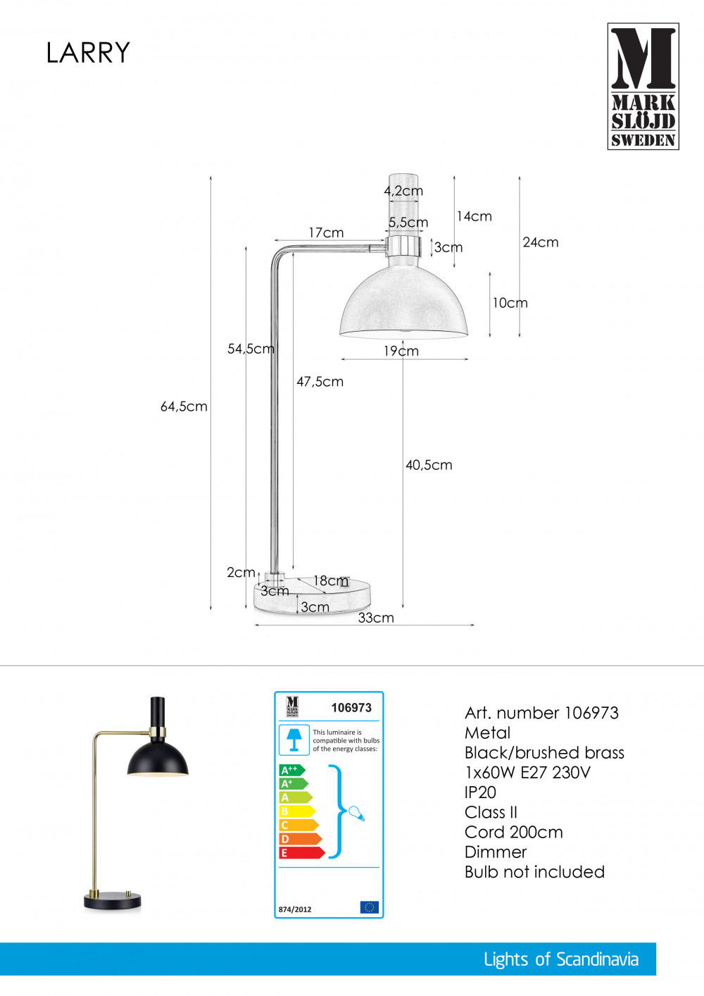 Markslöjd LARRY Stołowa 1L Czarny/Złoty Szczotkowany - MS-106973