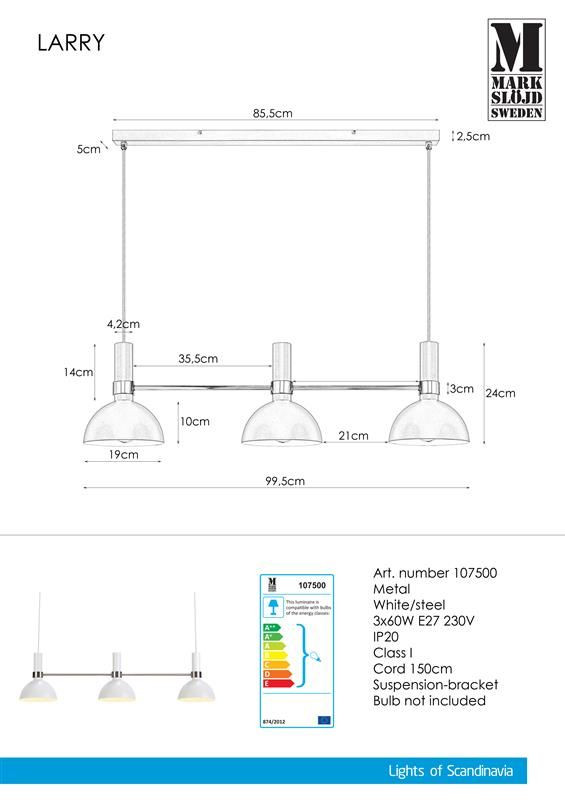 Markslöjd LARRY Wiszący 3L biały/Stal - MS-107500