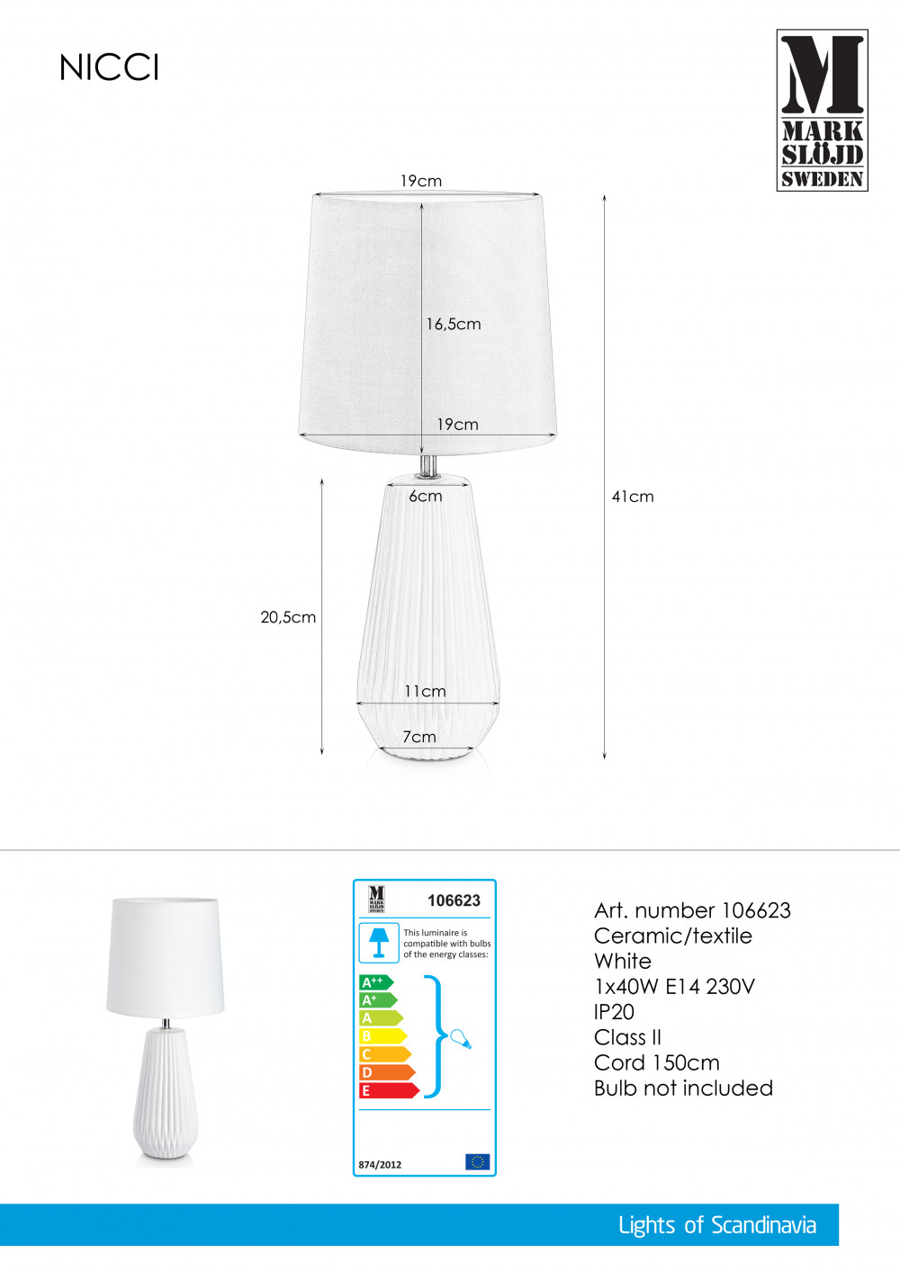 Markslöjd NICCI Stołowa 1L Biała - MS-106623