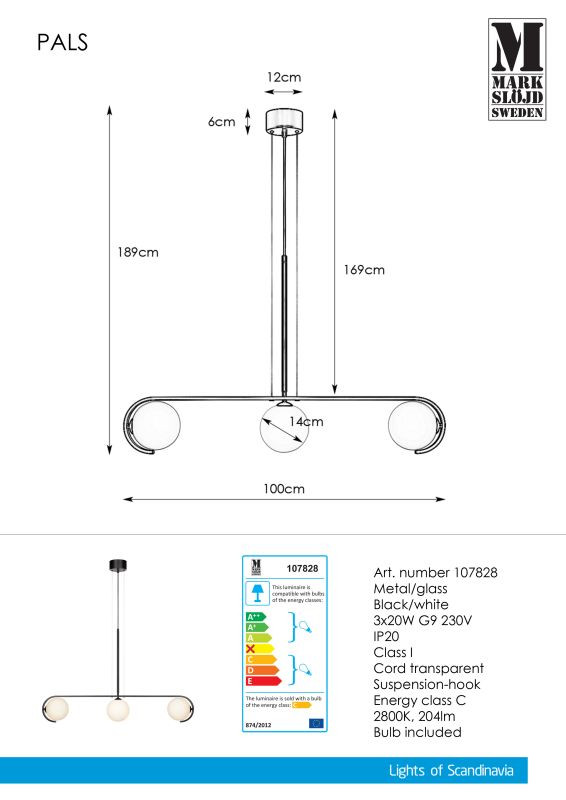 Markslöjd PALS Pendant 3L Black/White - MS-107828 /KIFUTÓ!!/