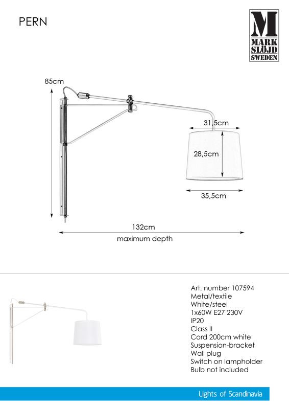 Markslöjd PERN Wall 1L White/Steel - MS-107594 /KIFUTÓ!!/