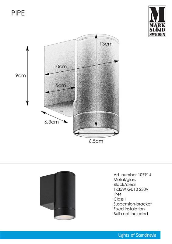 Markslöjd PIPE Kinkiet 1L Czarna IP44 - MS-107914