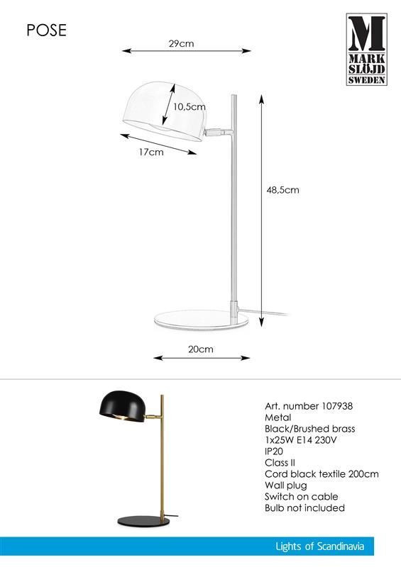 Markslöjd POSE Stołowa 1L Czarna/Złoty Szczotkowany - MS-107938