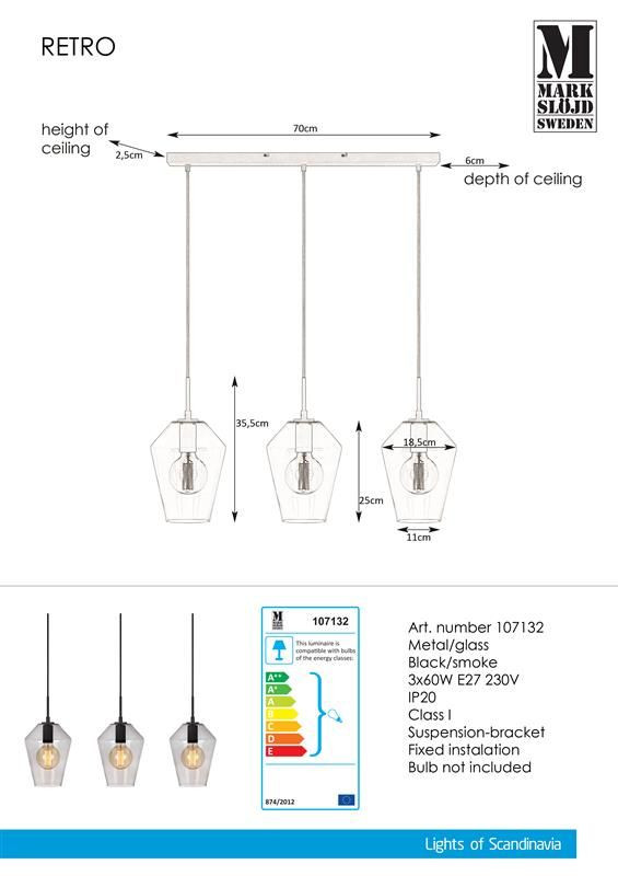 Markslöjd RETRO Wisząca 3L Czarny/Przydymiony - MS-107132