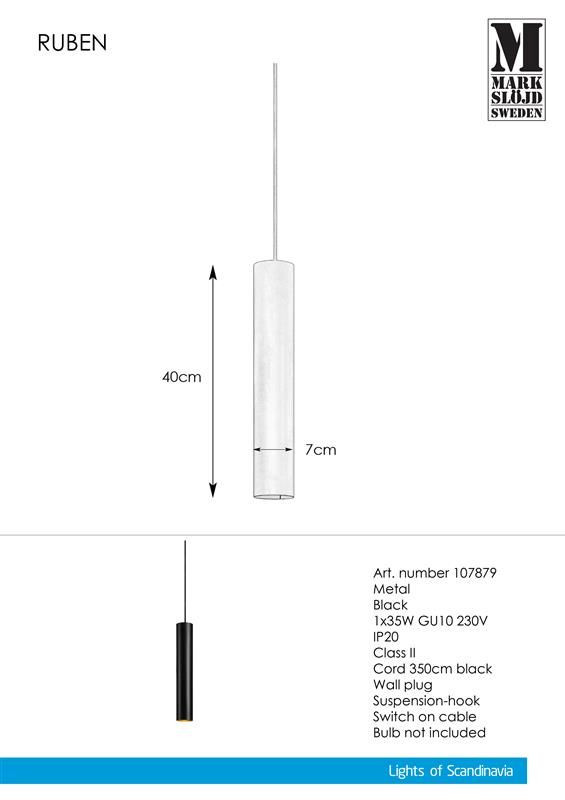 Markslöjd RUBEN Wisząca 1L Czarna - MS-107879