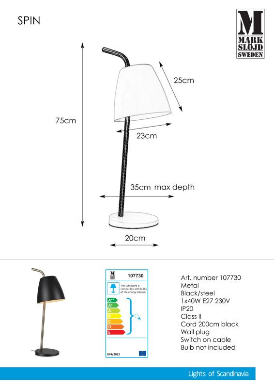 Markslöjd SPIN Table 1L Black/Steel - MS-107730