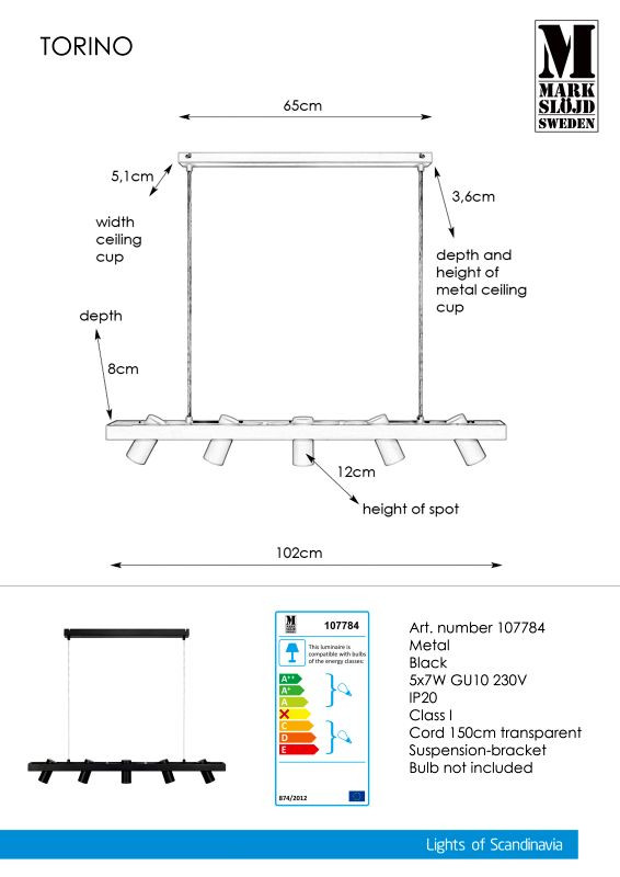 Markslöjd TORINO Pendant 5L Black - MS-107784