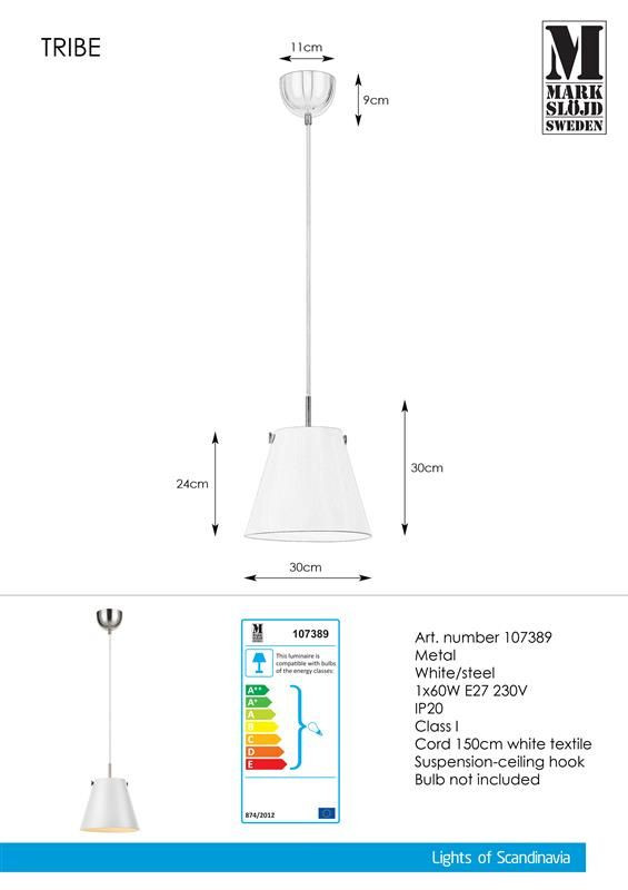 Markslöjd TRIBE Pendant 1L White/Steel - MS-107389