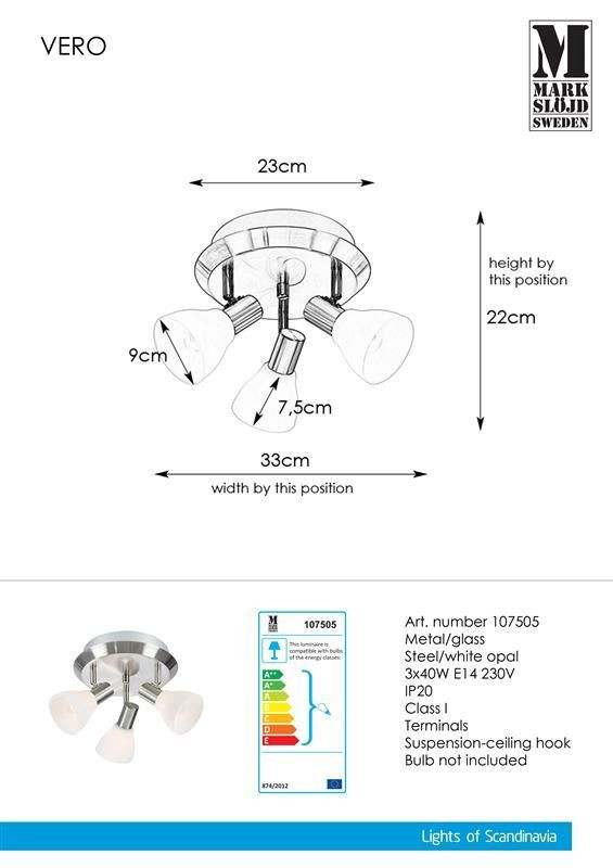 Markslöjd VERO Ceiling 3L Steel/Opal - MS-107505
