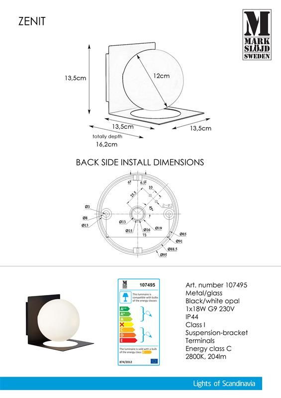 Markslöjd ZENIT Wall 1L IP44 Black/Opal - MS-107495