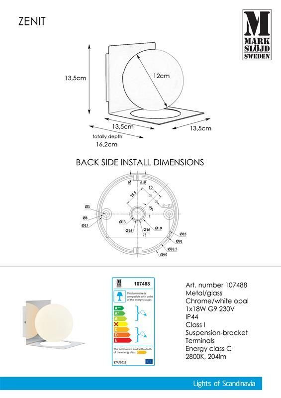 Markslöjd ZENIT Wall 1L IP44 Chrome/Opal - MS-107488