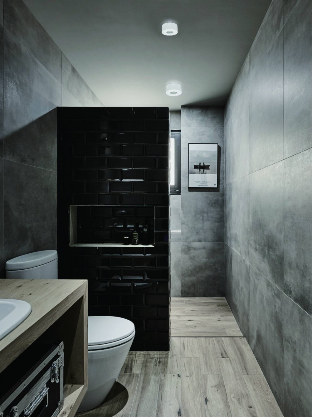 Fürdőszoba: A vízálló mennyezeti lámpák praktikus és biztonságos megvilágítást nyújtanak ebben a nedves környezetben.