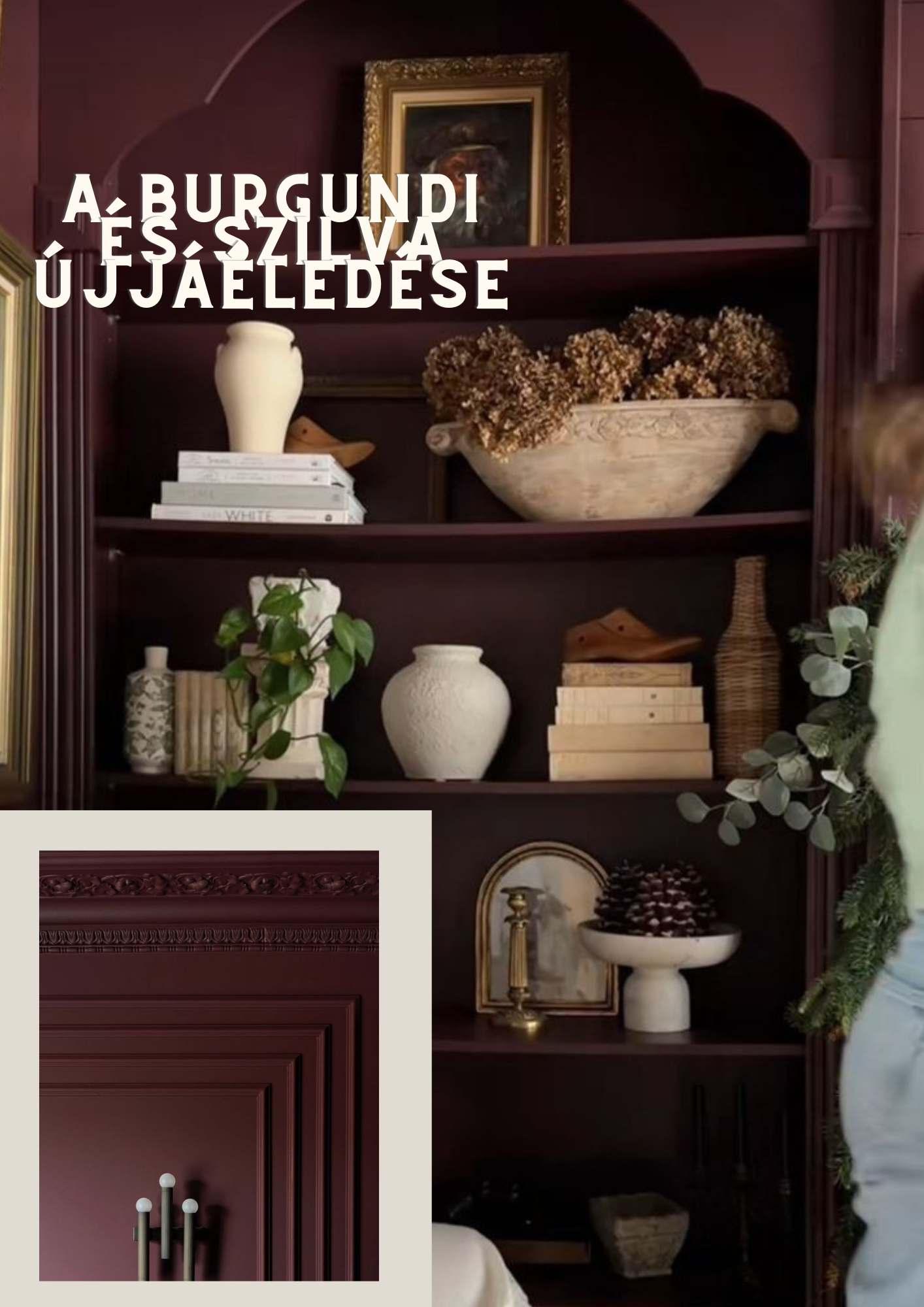 Az elmúlt néhány évben a bordó szinte teljesen eltűnt a színtérről. Lassan viszont látni visszajövetelét, a burgundi, szilva és francia vidéki kékkel együtt. Úgy tűnik a sok év szürkéi és lágy színei után vannak akik ismét picit merészebbre vágynak. A burgundi mély tónusai gazdag érzetet kölcsönöznek. Arany díszítésekkel párosítva valóban fennkölté tesz bármely szobát. A bordó és szilva inkább a klasszikus vonalat képviseli. Nem illik jól egy modern vagy minimalista térhez.