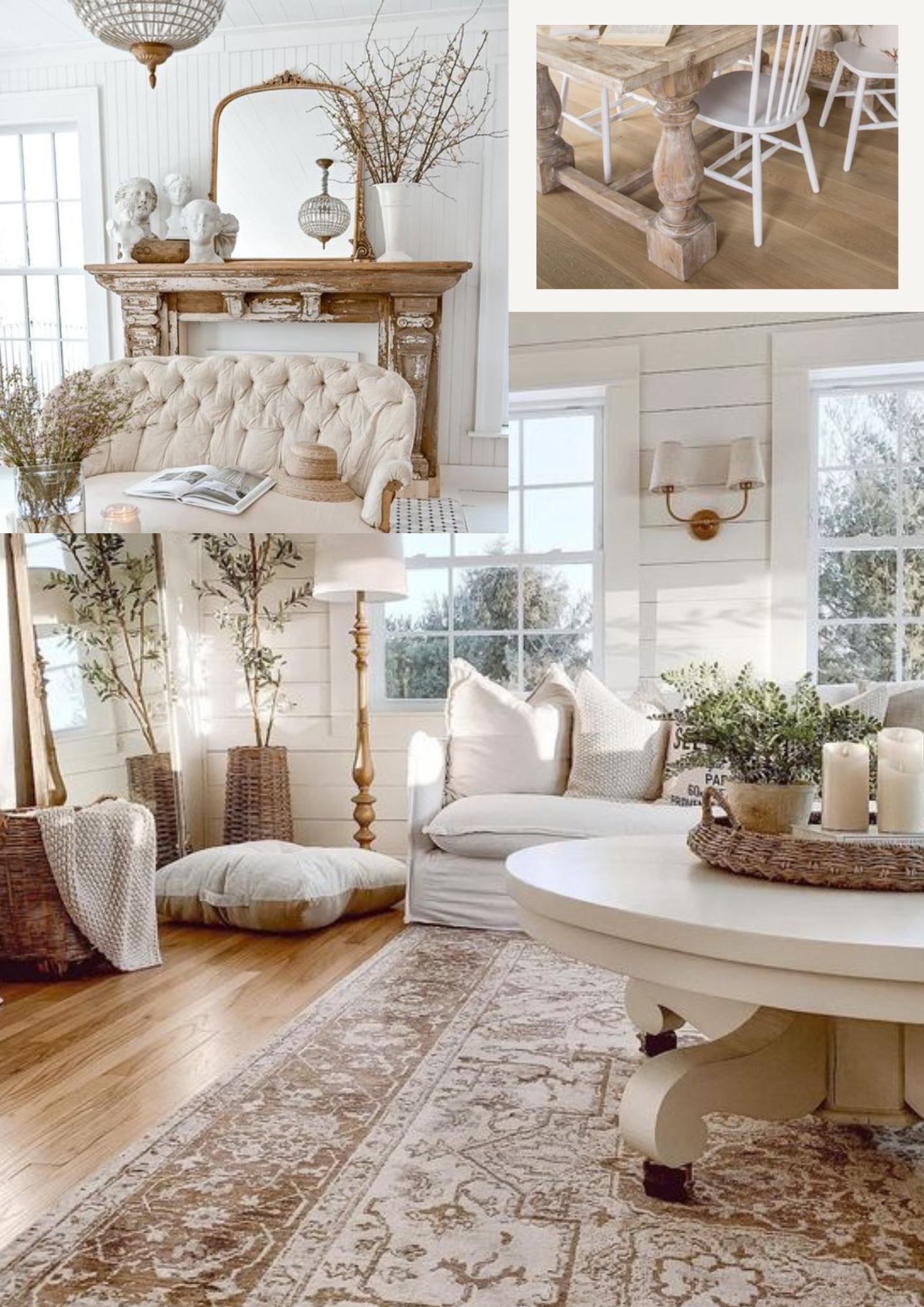 Kopott, patinás felületek: A bútorok és dekorációk gyakran kopott vagy idő előtti befejezéseket kapnak, hogy öregnek és jól használtnak tűnjenek.